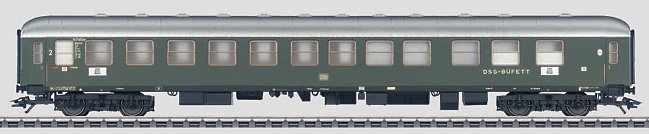 Prototype: German Federal Railroad (DB) half dining car, 2nd class compartment car with a dining car buffet area, type BRbu4üm-61, (later the type RBbumh 282). UIC-X design (m cars).