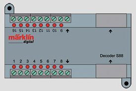 Model: This is a feedback module for contact generators on digitally controlled layouts. This module can be plugged into the L88 (60883) with the cable included with the former. The s 88 has a connecting socket for additional s 88 decoders (60881). 16 inputs for contact generators.
