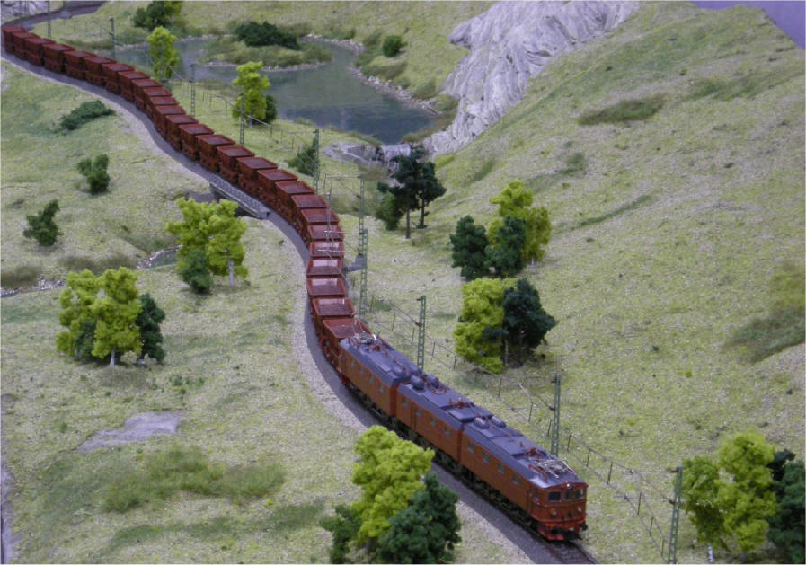 This photo shows it pulling all 24 cars (12 from Marklin, 12 from Trix), all