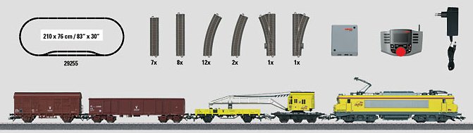Metal locomotive frame  Metal car frame  Digital locomotive with high-efficiency propulsion motor  mfx decoder supports extended motorola digital functions  Built-in sound effects circuit  Triple headlights that change over with the direction of travel  Triple headlights at the front and rear  Power supply can be switched to operate from catenary  Marklin close couplers in standard coupler pocket with pivot point  Marklin close couplers in standard coupler pocket with guide mechanism  Lettering on all rolling stock and motive power to standards 1970-1990