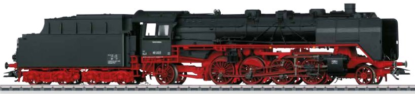 Model: The locomotive has the new mfx+ digital decoder and extensive sound functions. It also has controlled high-efficiency propulsion with a flywheel, in the boiler. 3 axles powered. Traction tires. The locomotive and tender are constructed mostly of metal. The 7226 smoke unit comes installed in the locomotive. The dual headlights change over with the direction of travel. They and the smoke unit will work in conventional operation and can be controlled digitally. Maintenance-free warm white LEDs are used for the lighting. There is an adjustable close coupling with a guide mechanism between the locomotive and tender for different curves. There is a close coupler with an NEM pocket and guide mechanism on rear of the tender. There is a mechanism in the tender to lower the coal load so that in the operations mode the coal usage can be represented visually in the tender. This function can only be used in the operations mode. Protective sleeves for the piston rods, brake hoses, and figures of the engineer and fireman are included as detail parts. Minimum radius for operation is 360 mm / 14-3/16". Length over the buffers 27.5 cm / 10-13/16".