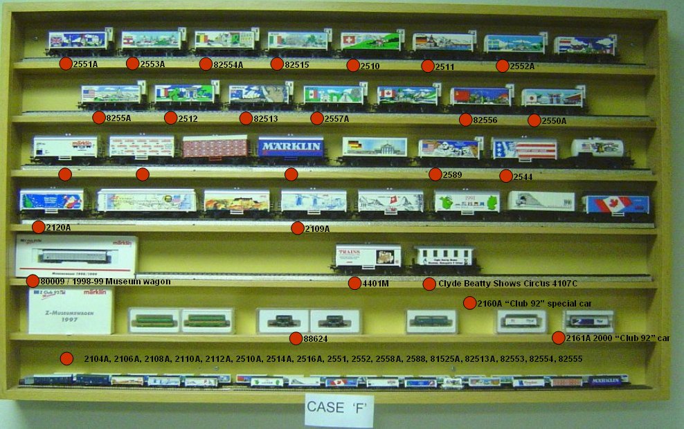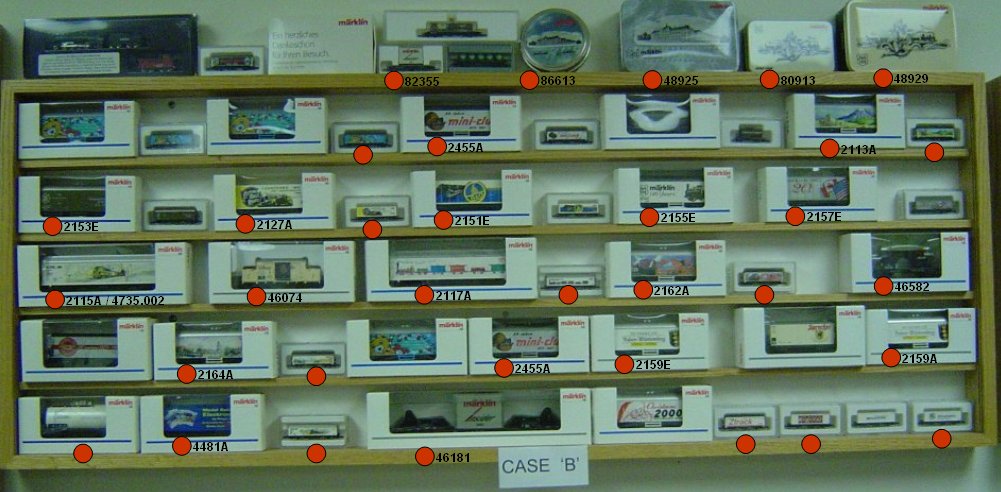 Please read the fine print: Märklin was kind enough to send me photos of each of the display cases they’re sending me, and I’ve shown them below ALONG with a list of the contents of each case as Märklin described them to me. By the way, I will also entertain offers for the display cases themselves. Note: if the item (in the photo) doesn’t appear in the list, or if an item on the list doesn’t appear in the photo, or it is marked as already sold, that means the item is NOT available. In any event, if you see something in the photo and on the list that you’d like, please let me know immediately and I’ll get you a price as quickly as I can. Some of these items, can simply be found on the www.marklin.com web site where you'll see more details and photos. Again, if you have any questions, please ask. Unless you see a box included in the photo(s) below for the particular item you're interested in getting, the box is NOT included. As such, I will NOT be able to take anything back as a return IF your complaint is that there was no box for the item(s). The trains, of course, will be fine and I will, as always, guarantee that they are in perfect shape and run fine. Unless the item is not as described or is not in perfect condition, all sales are final. For the last time -- if you have questions about anything, please ask! |